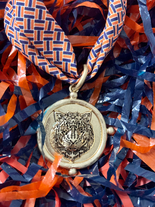 Auburn Scarf Tiger Charm Necklace