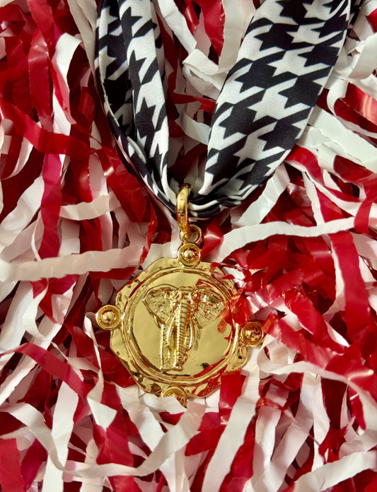 Houndstooth Elephant Charm Scarf Necklace