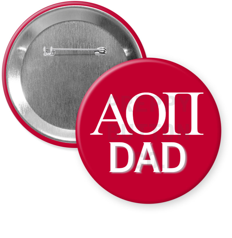 Our Alpha Omicron Pi Dad button is the perfect way to support your daughter on gamedays and special occasions.
