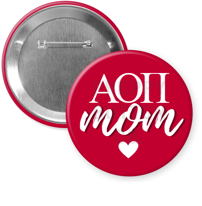 Our Alpha Omicron Pi Mom button is the perfect way to support your daughter on gamedays and special occasions.
