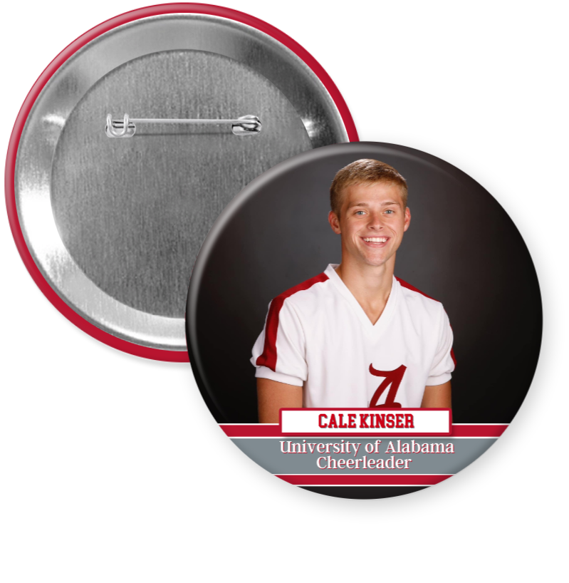 Our Full Banner Custom Photo Button is the perfect way to show your support and pride for your favorite University of Alabama student athlete or band member. This full banner custom button is sure to stand out on gameday. Roll Tide.