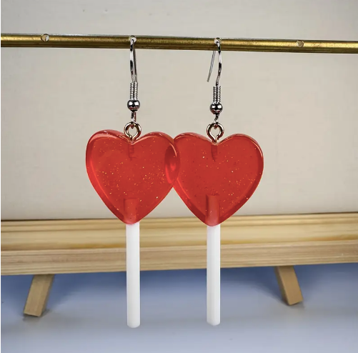 "Add a pop of sweetness with these Candy Color Heart Shape Lollipop Dangle Earrings! The cute style and resin material make them the perfect Valentine's Day earrings. Sweeten up any outfit with these quirky and playful earrings.