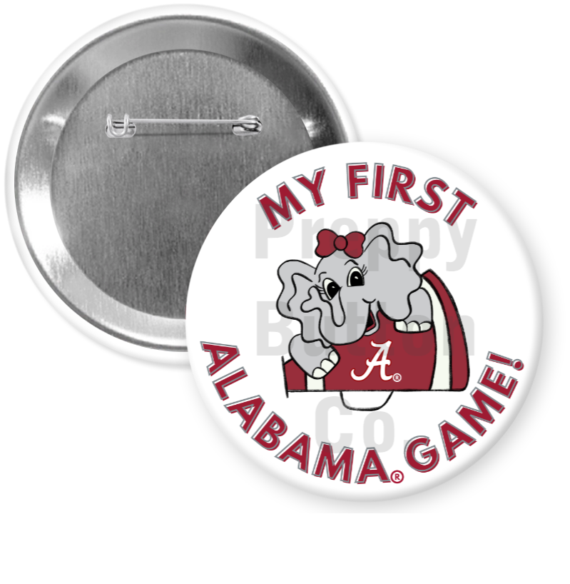 This gameday button is the perfect way to for a little fan to show her Bama pride at her first University of Alabama football game. This one of a kind design is a great way to commemorate such an awesome day that she will remember for years to come.