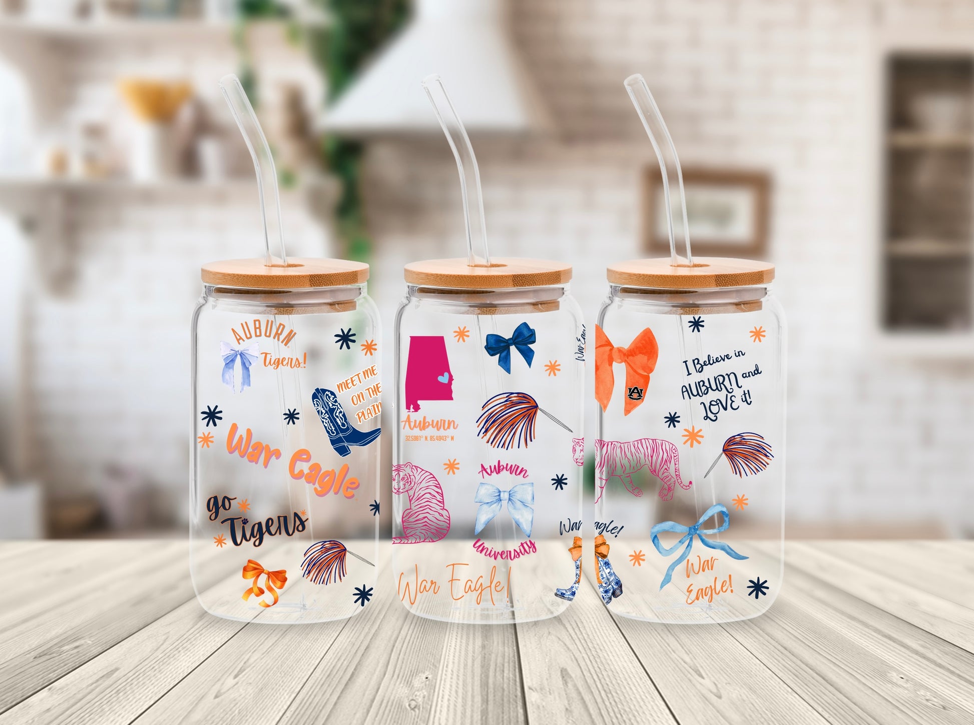 Tigers and Bows Custom Auburn Glass