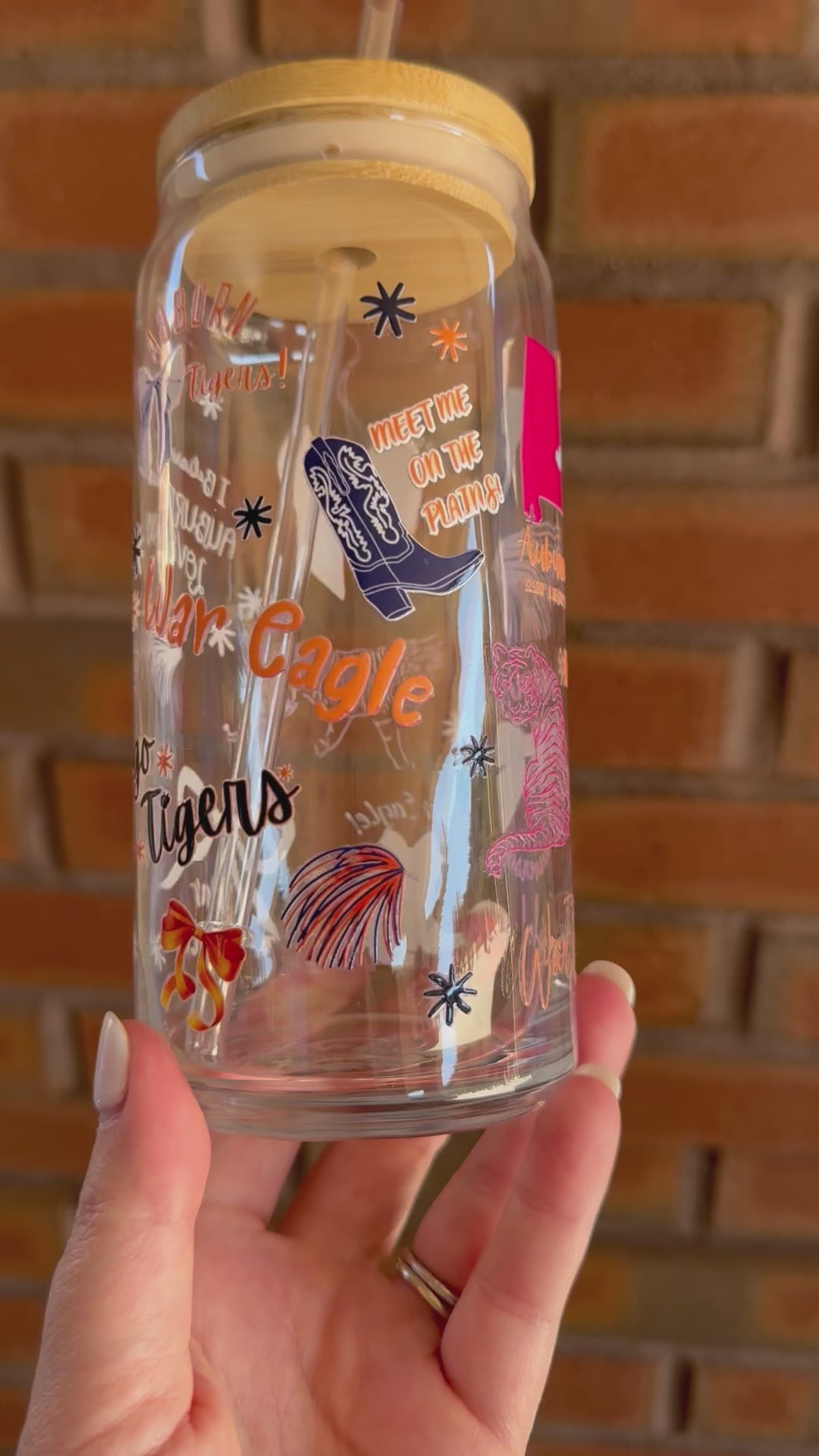 Enjoy your favorite hot or cold beverage in this custom designed and officially licensed glass! This 20 oz glass comes with a lid and straw, making it perfect for on-the-go runs. This glass will be your new go-to for showing your Auburn pride. War Eagle!!