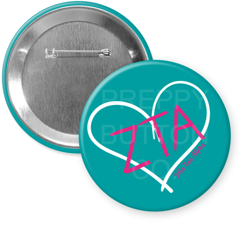 This adorable Zeta Tau Alpha button let's everyone know that Zeta has your heart! The perfect accessory for gamedays and sorority events.